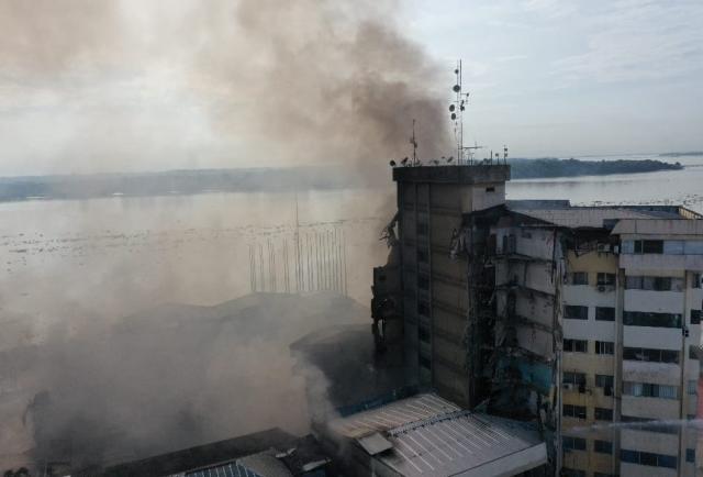 El incendio en el edificio Multicomercio no ha sido controlado luego de 35 horas de labores de los bomberos