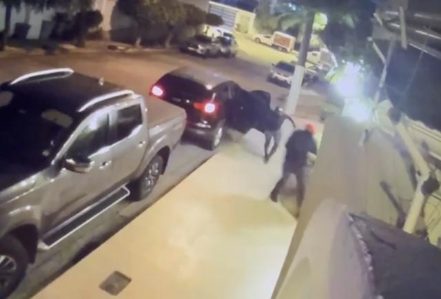 En el video de una cámara de seguridad se escucha entonces que el perro empieza a ladrar y, cuando un tercer sujeto intentaba bajarse del vehículo, los otros dos salieron inmediatamente de la casa y volvieron a subirse al automóvil tipo SUV.