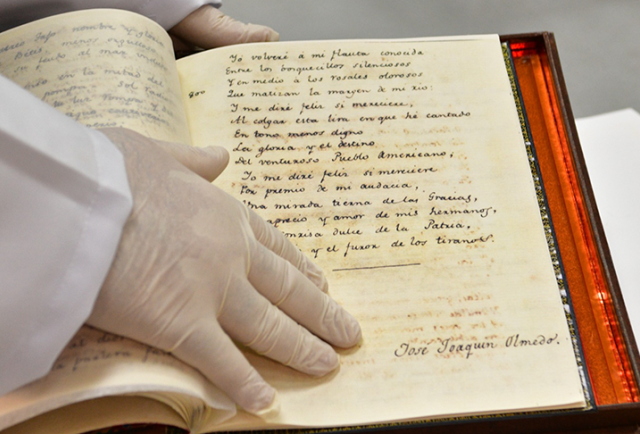 Manuscrito de José Joaquín de Olmedo entra al Registro Memoria del Mundo de Unesco