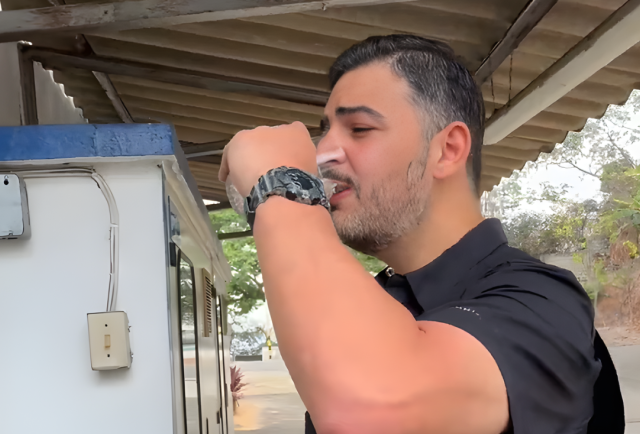 El video concluyó con otra toma del alcalde bebiendo agua y reiterando su invitación al presidente: “Lo invito, señor presidente”.