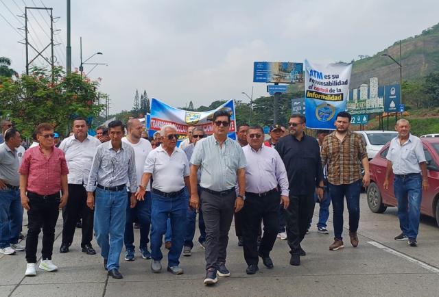 La protesta fue organizada por la Federación de Transportadores Urbanos del Guayas (Fetug), por la Unión Provincial de Transporte Escolar Institucional de Guayas (Uproteig) y por la Unión de Cooperativas Transporte en Taxis del Guayas.