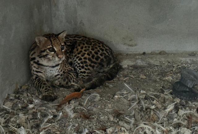 Rescatan a ocelote que banda criminal tenía enjaulado en Pascuales