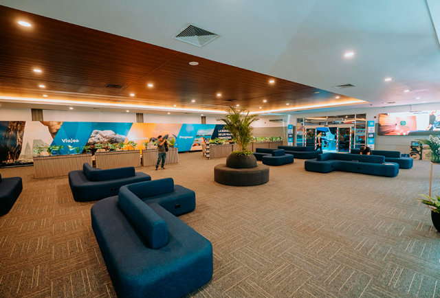 Con capacidad para 120 pasajeros, la sala servirá para que los viajeros esperen la salida de su bus en muebles con tela de secado rápido, antibacterial, resistente a ácidos y autoretardante al fuego.
