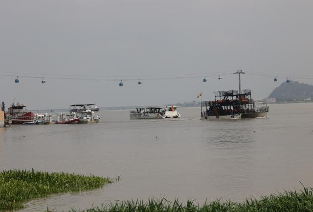 El río Guayas es un elemento característico de Guayaquil, con sus pocas pero variadas embarcaciones, cuyas aguas calmadas contrastan con el ambiente que se vive en las calles, saturadas de vehículos motorizados.