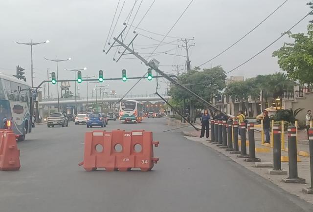 El poste quedó debilitado, inclinado y en posición peligrosa para los vehículos y peatones que transitan por el sitio. Agentes de la Comisión de Tránsito del Ecuador (CTE) acudieron al sitio para constatar la novedad.
