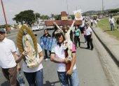 Seguridad. En la ruta de la romería estaba dispuesto que caminarían en contravía por la avenida León Febres-Cordero, por lo que unos 25 agentes de tránsito estuvieron desde tempranas horas acordonando la zona.