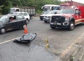 El auto gris que circulaba por la avenida Perimetral la mañana de este 20 de junio terminó parcialmente destrozado.