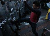 Estandartes celestes marcharon en Quito para apoyar al expresidente Rafael Correa. Los manifestantes gritaban su rechazo al Gobierno actual.