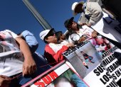 Los familiares de Katty Velasco y Óscar Villacís, pareja asesinada en la frontera, se instalaron frente al Palacio de Carondelet.
