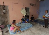 Dos familias en Huaquillas: una ocupa un lote abandonado y la otra vive en una casa comunal. La localidad fronteriza desborda migrantes en la calle.