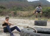 Corre a toda velocidad, sin detenerse, concentrado... De repente, visualiza sus próximos retos: escalar una gran pared o arrastrar una llanta grande rápidamente por 10 metros.