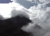Volcan Reventador emite vapor y ceniza a 900 metros del crater