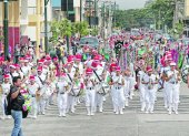 Precaución. Para evitar incidentes, en la avenida 9 de Octubre se colocaron rejas para evitar que las personas crucen la vía entre las carrozas alegóricas y los bailarines.
