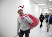 Obama entrega regalos vestido con gorro de Papa Noel