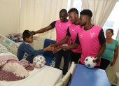Los jugadores de Liga de Quito participaron en la campaña de lucha contra el cáncer y también dieron regalos por Navidad a niños en Pomasqui.