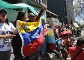La movilización fue vigilada por efectivos policiales, y en ella los participantes entonaron el himno venezolano.