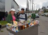 A las 06:00 Virginia Zambrano sacó su carrito con aguas medicinales y se instaló en las afueras de uno de los recintos electorales en la parroquia Picaihua de Ambato, provincia de Tungurahua.