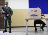El candidato a la Alcaldía de Quito, por el movimiento Centro Democrático, sufragó la mañana de este domingo en el barrio de San Roque.