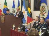 Se refirió a la situación de la frontera Ecuador-Colombia, indicando que las nuevas amenazas son “híbridas, mutantes y difusas” al referirse a los grupos de disidentes de las FARC.