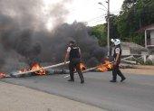 Manifestantes bloquean la vía Spondylus e incendiaron neumáticos. Alegan presunto fraude en las elecciones en esta provincia.