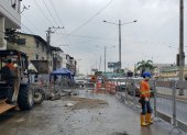 La reparación del acueducto 800 mm se realiza en la avenida 25 de Julio. Varios sectores del sur de la ciudad se quedaron sin el servicio de agua potable.