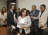 Con la frialdad de un informe de labores, dos funcionarios presentaron el descargo. La excanciller envió un alegato escrito.