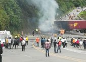 Choque e incendio de trailers bloqueo la via Aloag-Santo Domingo