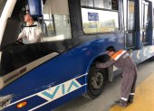 Con tres unidades de la troncal 1 (ruta Terminal Guasmo-Río Daule) empezó la revisión técnica vehicular del sistema de transporte masivo Metrovía.