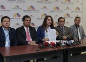 La legisladora correísta evadió las preguntas y se limitó a leer un documento.