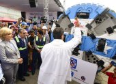 Al bautizo de la máquina asistió la alcaldesa Viteri, quien aseguró que no afectará la calzada.