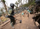 Entre las evidencias, la Policía halló alrededor de 448 sacos de material mineralizado.