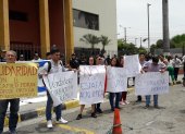 Los manifestante exhibieron carteles con mensajes en los que respaldaban a Camilo Morán, Jorge Ortega y Eduardo Chancay, quienes la semana pasada fueron destituidos.