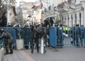 Tras suspenderse las declaraciones del presidente Lenín Moreno, los uniformados evacuaron a quienes se encontraban en la sede del Gobierno Nacional.