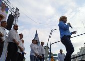 La avenida 9 de Octubre fue el punto elegido por los líderes del Partido Social Cristiano para dar su discurso ante la ciudadanía.
