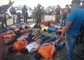 Los recapturados cerca de las 15:50 fueron traslados en dos buses con destino hasta la capital de las manabitas, con fuerte resguardo policial.