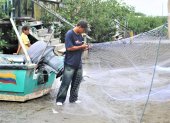 Reparar daños en las mallas requiere de mucha concentración y habilidad. Temen que la actividad artesanal desaparezca.