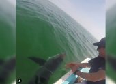 El pescador lo amarró a su mano para llevarlo a aguas profundas y salvarlo.