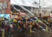 La lluvia puso a correr a transeúntes y vendedores que trataban lo más raído posible en poner sus pertenencias a buen recaudo.