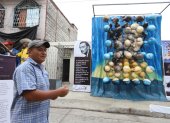 José Salas recrea cuadros de artistas famosos y los hace monigotes gigantes.