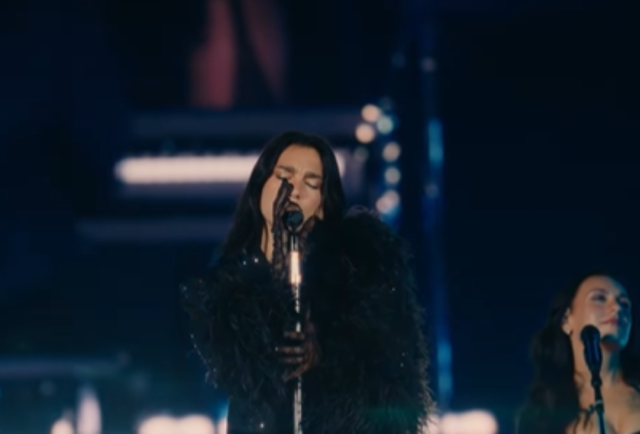 Con un vestido negro de brillantes, una bufanda de plumas negra también y sola ante el micrófono, Dua Lipa comenzó a cantar Antología. Uno de los grandes hits de la cantante colombiana. Apenas inició todo el estadio comenzó a gritar e inmediatamente a entonar la canción junto a ella.