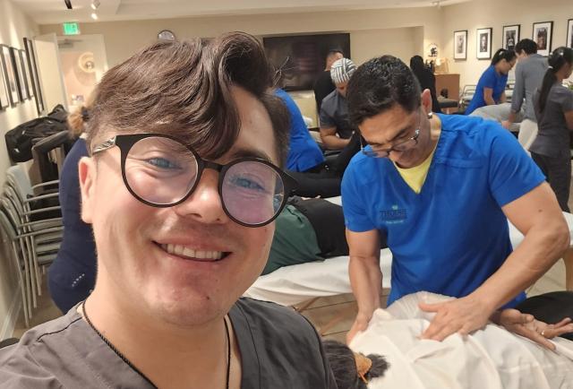 Mauricio Altamirano combina trabajo y estudios. En seis meses obtendrá su certificación como masajista profesional. La formación exige conocer anatomía, técnicas especializadas y protocolos de seguridad, porque un procedimiento mal aplicado puede causar lesiones.