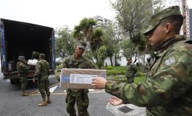 CNE distribuye material electoral en Quito bajo resguardo militar