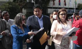 El presidente de la Central Unitaria de Trabajadores y decenas de sus simpatizantes realizaron un plantón en los exteriores del edificio Zarzuela, en Quito. Una jurista señala que el fallo judicial no es ejecutable y viola la seguridad jurídica del país