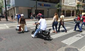 Una moto eléctrica cruza el paso cebra junto a los peatones