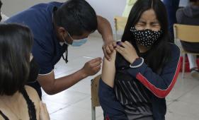 Jóvenes de entre 12 y 15 años del colegio 24 de Mayo iniciaron su vacunación. Los planteles educativos son los encargados de inmunizar a sus alumnos