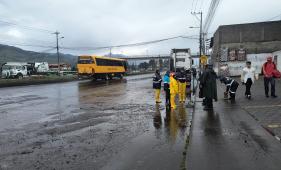 Paso en av. Panamericana Sur se abre, tras inundación por fuertes lluvias en Quito