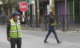 Uniformados de la Agencia de Tránsito y Movilidad (ATM) intervinieron para evitar que se cometa el suicidio. Cámaras de vigilancia captaron el suceso.