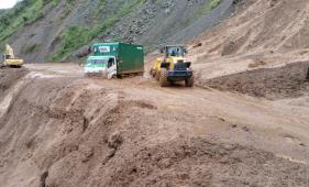 Vía Cuenca - Molleturo: Camión quedó atrapado en deslizamiento de lodo