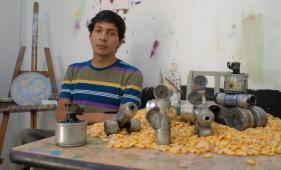 Tres jóvenes quiteños utilizan la escultura, música y pintura para preservar el reclamo de octubre pasado.