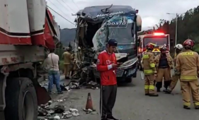 Bus interprovincial se impactó contra camión sobre vía rápida Cuenca- Azogues